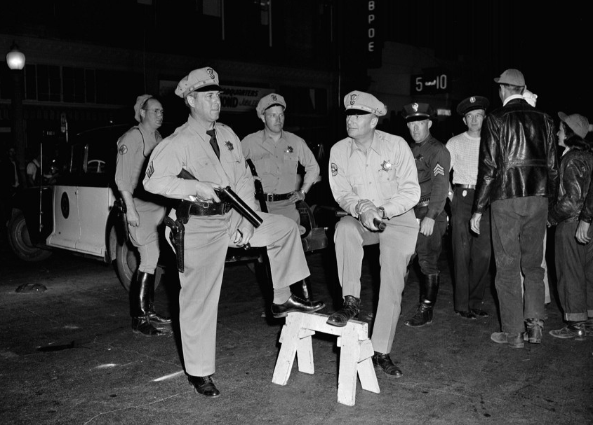 Pourquoi cet événement précis a-t-il attiré autant d’attention, à travers le temps ? D’abord parce qu’il marque le début du traitement médiatique du motard comme un « hors-la-loi » : ce fut le premier épisode d’une longue série d’articles à sensation sur le sujet. Ensuite parce qu’il a été rendu célèbre par le film L’Equipée sauvage, tourné en 1953 par László Benedek. Ce fut l’un des premiers films américains se focalisant sur la délinquance adolescente d’après-guerre, sujet qui devint dès lors un véritable phénomène de société. Le personnage interprété par Marlon Brando, a incarné le stéréotype du jeune rebelle, avec sa veste en cuir noir et son t-shirt blanc, ouvrant la voie à de nombreuses réinterprétations du genre, telle celle de James Dean dans La Fureur de vivre en 1955 ou des élèves turbulents de Graine de Violence la même année. Dans son livre Teenagers: An American History (dans lequel l’auteur met en lumière l’imagerie de l’adolescent rebelle dans la culture américaine), Grace Palladino note d’ailleurs que « personne ne savait à quoi ressemblaient les adolescents rebelles jusqu’à ce que Marlon Brando joue le rôle d’un chef de gang de motards… ». En somme, la première figure hollywoodienne de l’adolescent voyou fut celle… d’un motard ! Symbole pour les uns, cliché pour les autres, une image en tout cas qui restera longtemps gravée dans les mémoires.